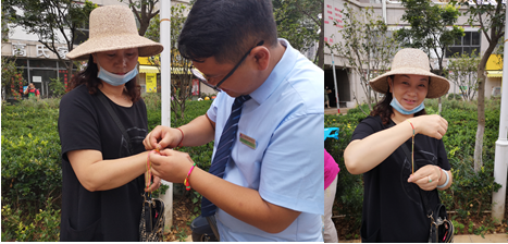 最后是“端午五彩線(xiàn),社區(qū)文化情”寓意手帶五彩線(xiàn),壓邪避毒,長(zhǎng)命百歲,攜手共端午。