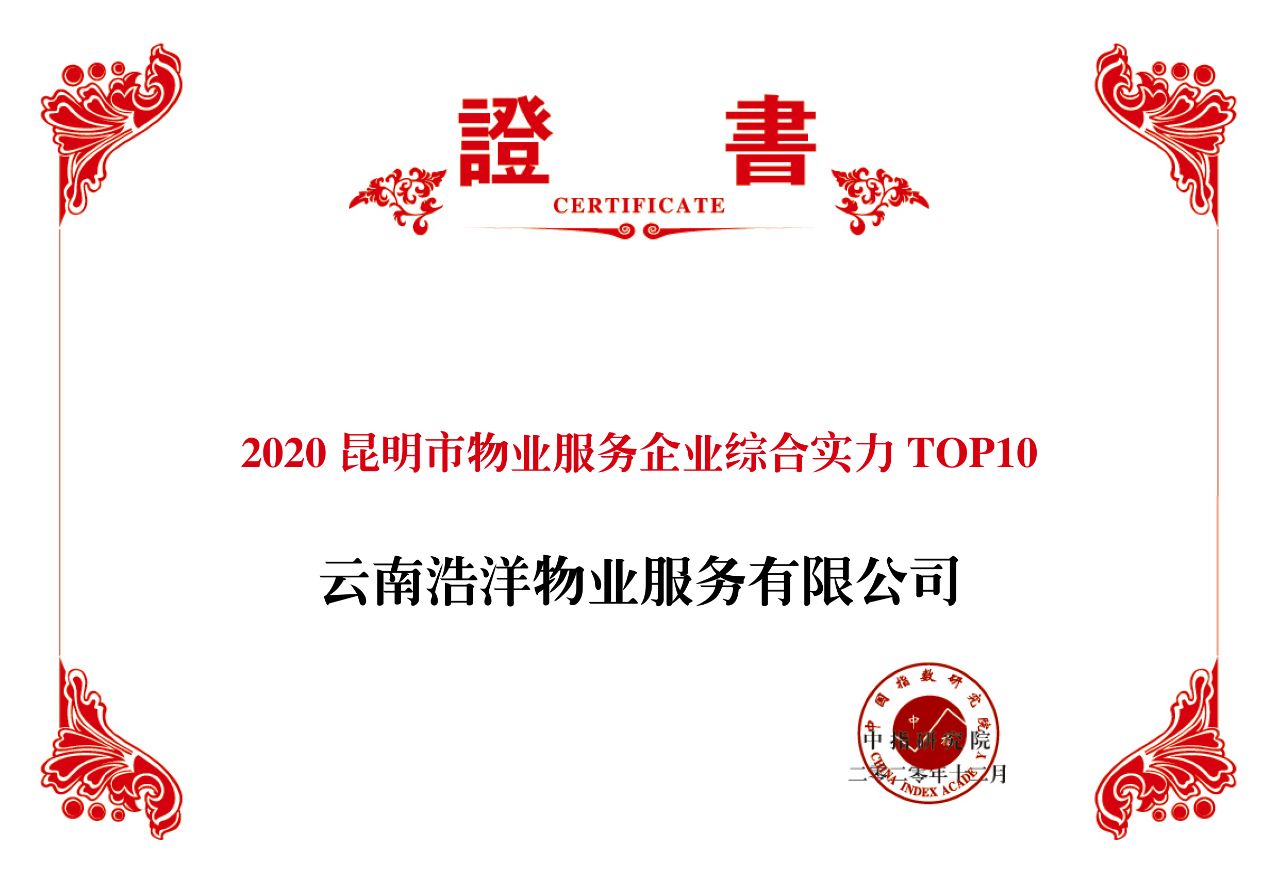 2020昆明市物業(yè)服務(wù)企業(yè)綜合實(shí)力TOP10