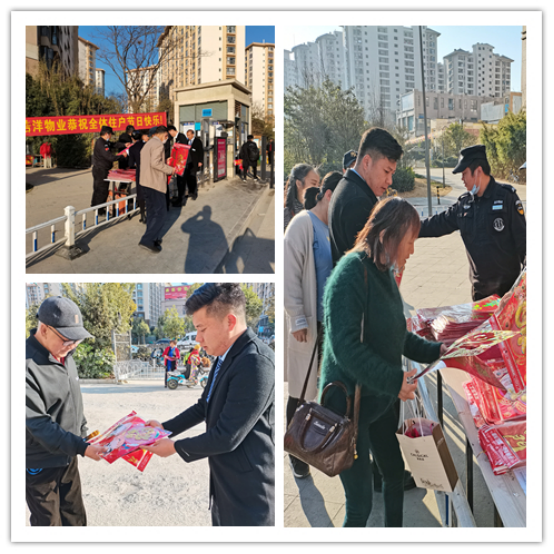 春節(jié)前夕,為豐富廣大小區(qū)業(yè)主(住戶)的春節(jié)文化生活,展社區(qū)風(fēng)采,為社區(qū)文化奉獻(xiàn)自己的一份力量,云南浩洋物業(yè)服務(wù)有限公司開展了“便民服務(wù)迎新春”為主題的社區(qū)文化活動(dòng)。