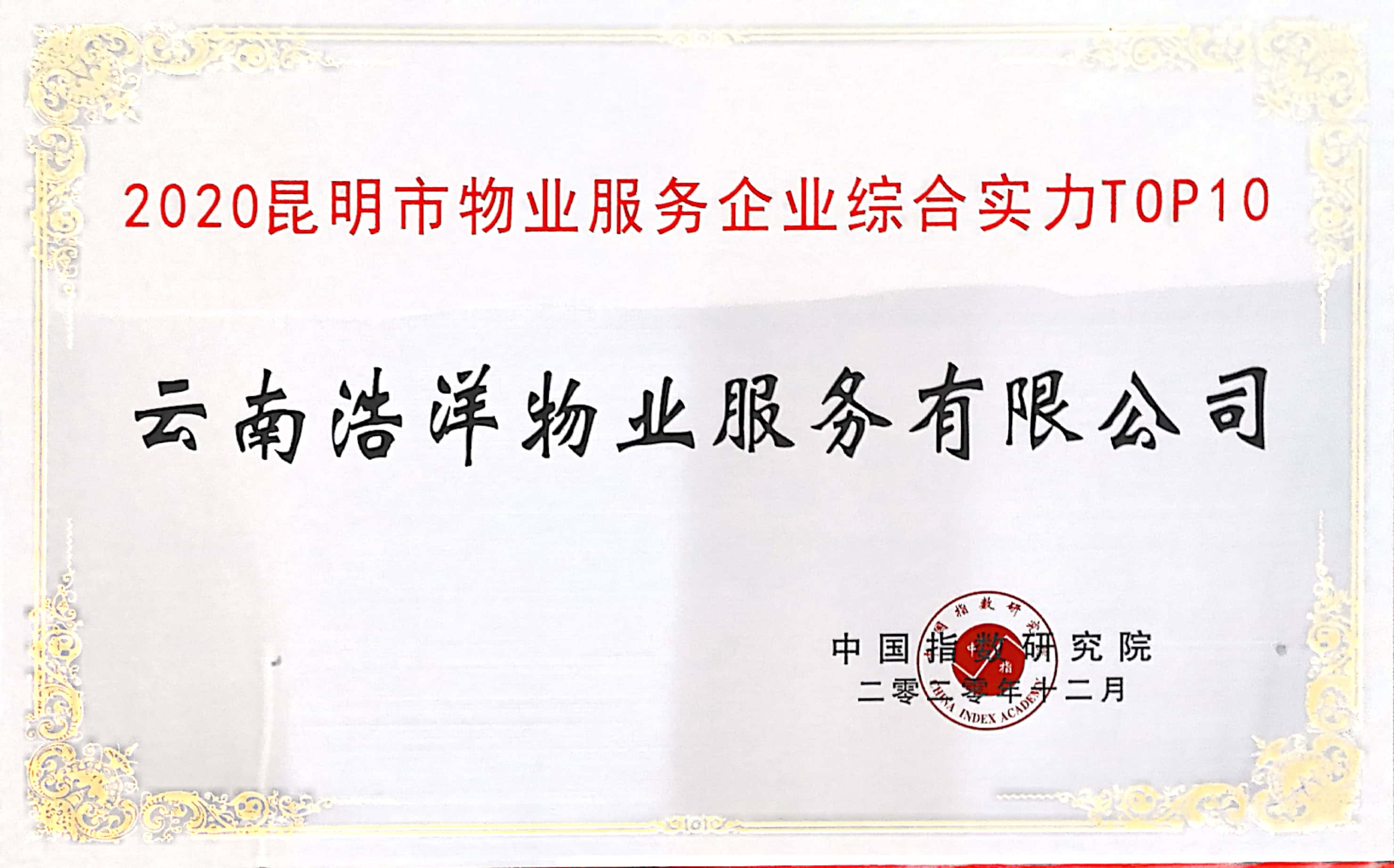 2020昆明市物業(yè)服務(wù)企業(yè)綜合實力TOP10
