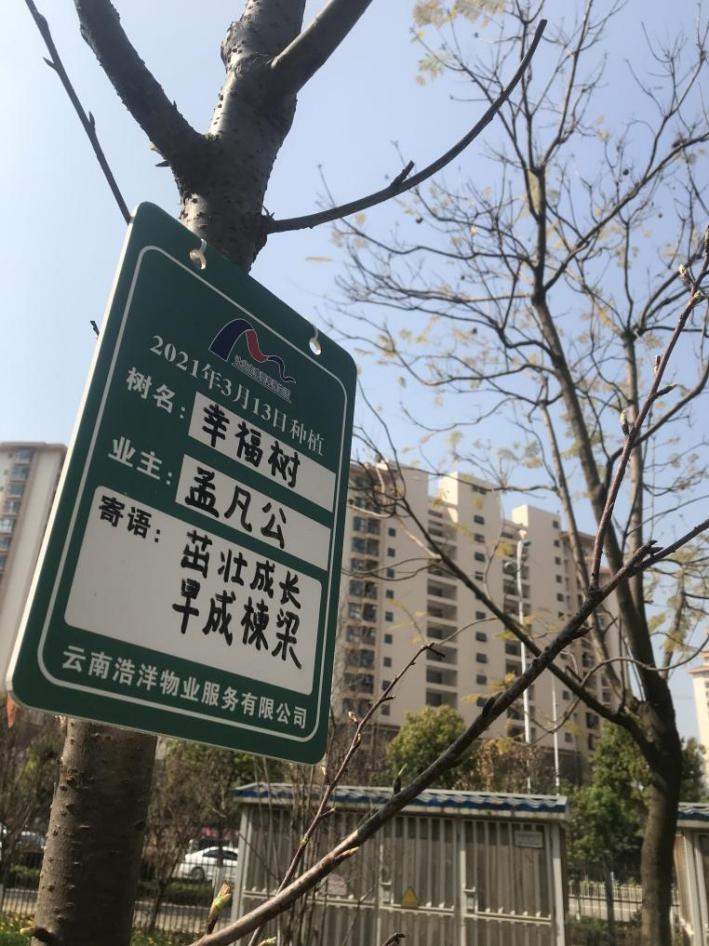 俊?;ǔ恰V電苑、滇池潤園項(xiàng)目,同時于2021年3月13日星期六早晨10點(diǎn)展開了植樹活動。活動當(dāng)天,業(yè)主至活動地點(diǎn),免費(fèi)領(lǐng)取櫻花樹苗,在物業(yè)工作人員的指導(dǎo)下進(jìn)行栽種,掛上吊牌。