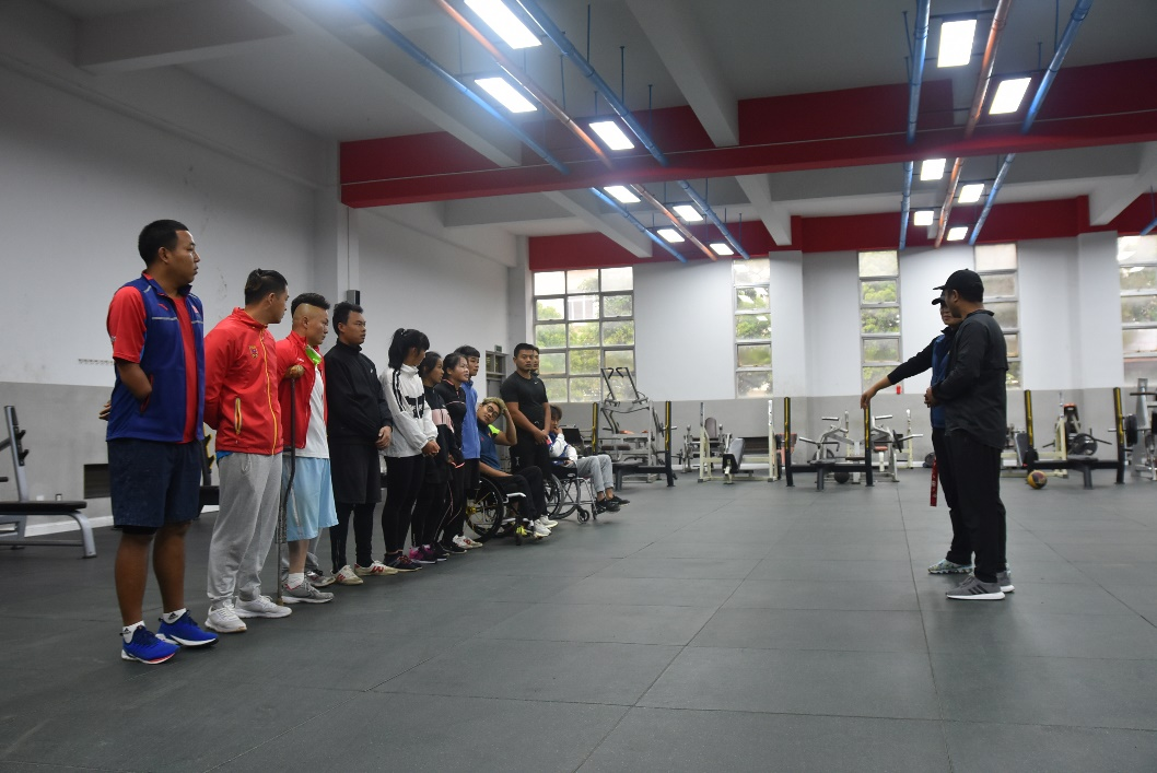 在公司領(lǐng)導(dǎo)和省體工領(lǐng)導(dǎo)的帶領(lǐng)下,在殘疾人運動員們細(xì)心的指導(dǎo)下,浩洋物業(yè)的員工代表開始體驗運動員們部分訓(xùn)練內(nèi)容。