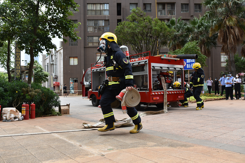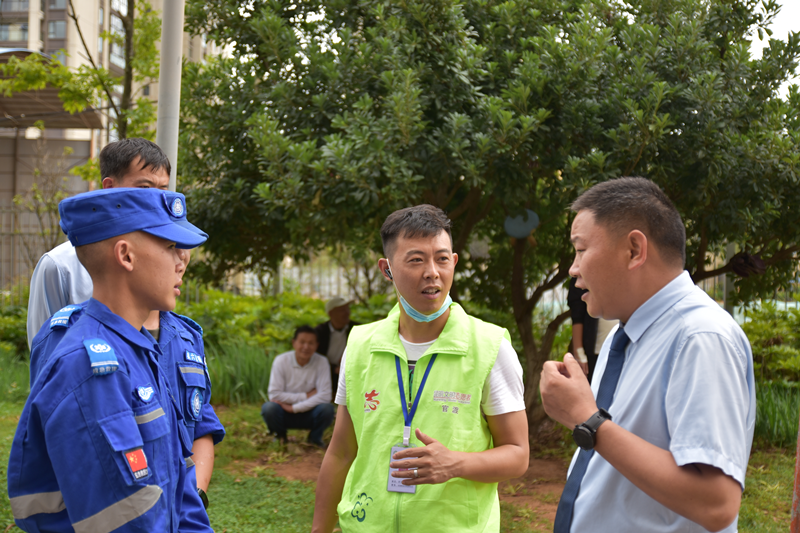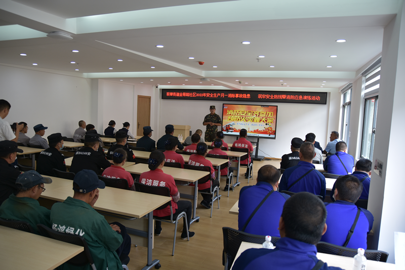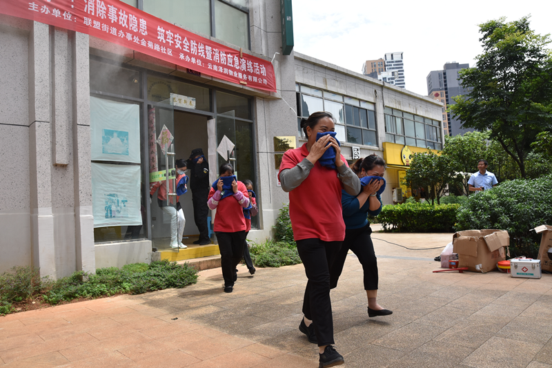 6月23至24日,公司分別在俊?;ǔ翘旄T?、溪畔麗景開展了火災(zāi)應(yīng)急演練。演練分為現(xiàn)場消防安全知識宣講和實戰(zhàn)演習(xí)兩部分。安全知識宣講部分由外請的應(yīng)急救援教官向參演人員宣講滅火器使用方法和消火栓箱使用方法。安全知識宣講后,現(xiàn)場開始實戰(zhàn)演練,突然間現(xiàn)場48棟1107室冒出濃煙,監(jiān)控室人員發(fā)現(xiàn)火情后迅速拉響消防警報,并向服務(wù)中心應(yīng)急指揮小組報告,應(yīng)急指揮小組立即啟動消防應(yīng)急預(yù)案,服務(wù)中心應(yīng)急救援小組員工攜帶干粉滅火器迅速抵達(dá)現(xiàn)場控制火情,只見火勢逐漸被壓制,但是一袋衣物倒掉增加火勢又反撲增大,這時社區(qū)消防隊趕到,4名消防員協(xié)助應(yīng)急救援小組迅速完成水帶、水槍對接口、甩水帶、打壓射水系列動作,一股激流射向熊熊火焰,轉(zhuǎn)瞬大火被撲滅,火災(zāi)被順利消除,現(xiàn)場響起一片掌聲。