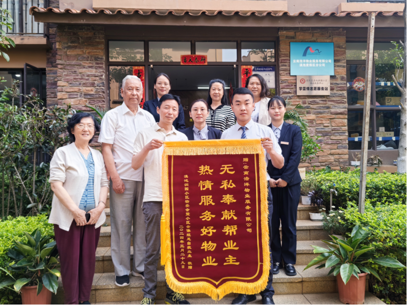 近日,我公司服務(wù)項目滇池潤園物業(yè)服務(wù)中心,受到了物委會代表的表揚,并送上了“無私奉獻幫業(yè)主,熱情服務(wù)好物業(yè)!”表揚錦旗。